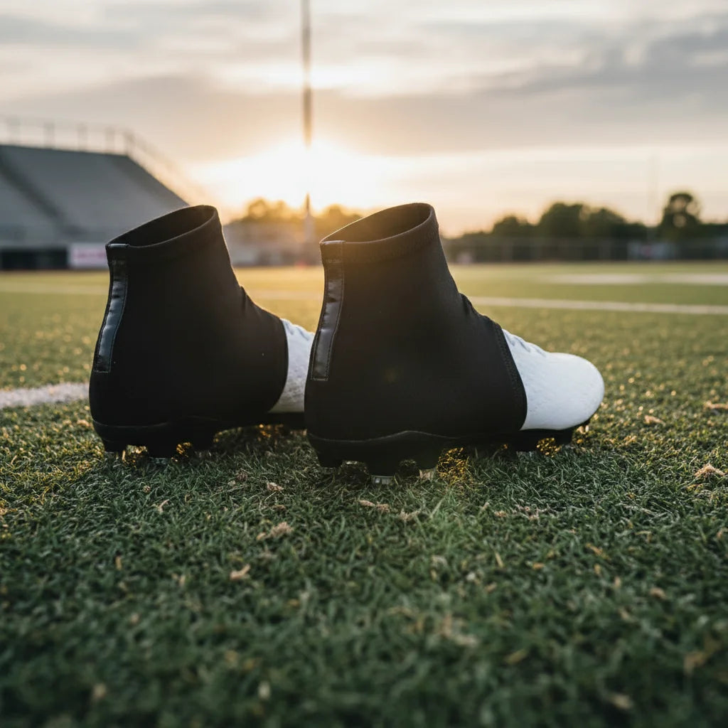 Pro-Fit Cleat Covers are premium, stretchy ankle covers designed to protect your athletic footwear and elevate your on-field style. They come in a convenient bundle of black and white pairs, ensuring you're always game-ready with a sleek, professional look.